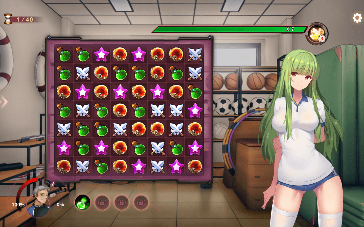 这是一款“美少女+宝石消除+RPG”结合的游戏。