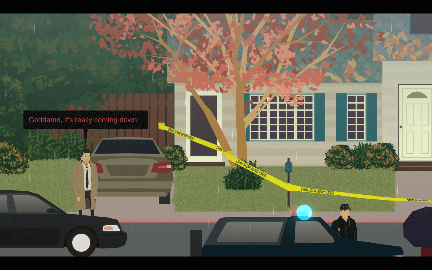 《大雨滂沱(Rainswept)》又名《雨袭》是Frostwood Interactive制作发行的一款冒险解谜游戏。故事主角是一个名侦探,他来到派恩维尤小镇调查一起死亡案件,这是一对在厨房死亡的夫妇,当地人认为这是一起自杀事件,他们的猜测是由于夫妻关系不和的传言而引起的,但这毕竟只是谣言,究竟真相是什么呢? 一起进入游戏寻找真相吧!