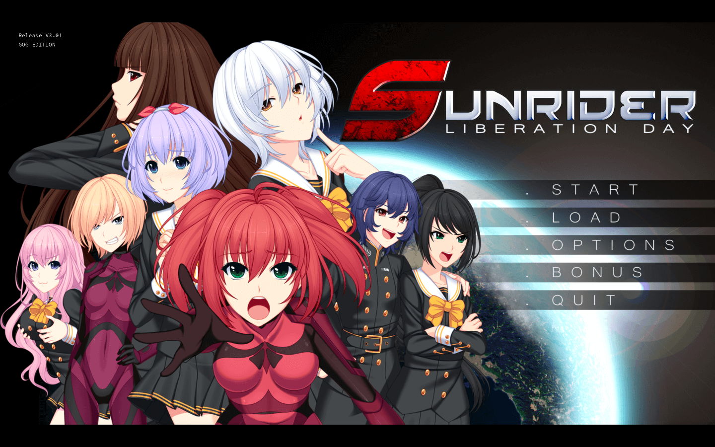 《太阳骑士:解放日(Sunrider Liberation Day )》是一款融合了科幻题材视觉小说和战术RPG和恋爱模拟元素的游戏。该系列讲述的是Kayto Shields船长和他的飞船“太阳骑士”一起维护宇宙和平的故事。