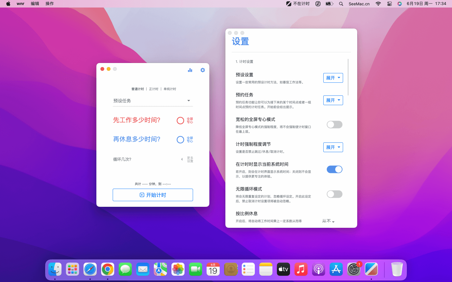 有一套常用的节律(如番茄法)?没事,预设模式就能实现。
