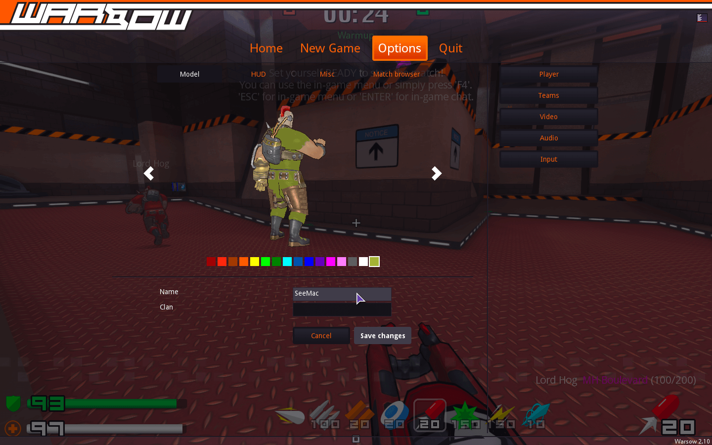 Warsow v2.2.0.8 是GOG版,测试连不上服务器,只能玩本地 Local game