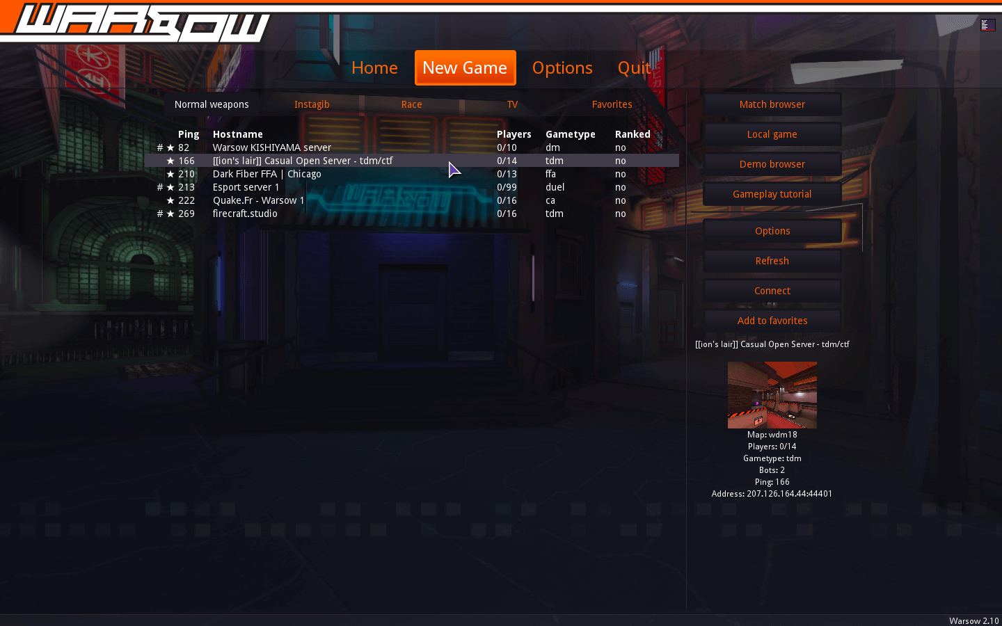 warsow v2.1.2 是官方版,测试可以连接服务器(如截图)