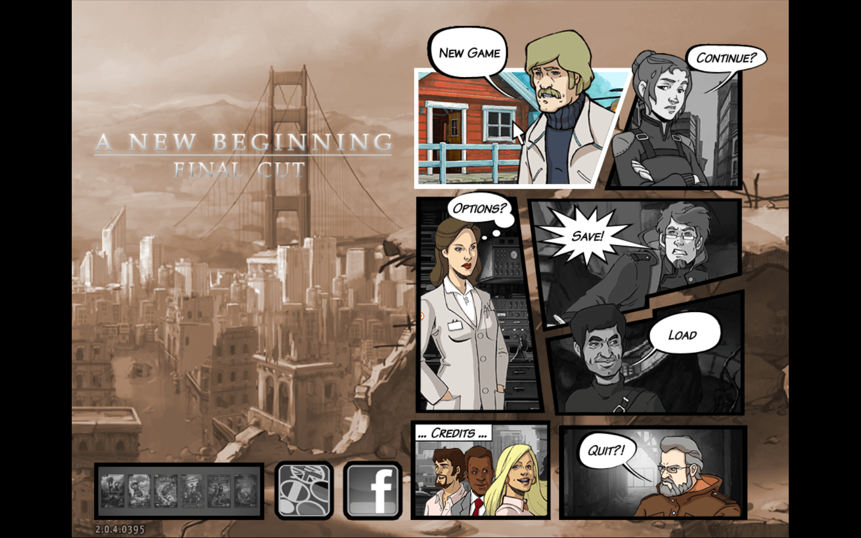 《新的开始:最终剪辑版》又名《新的开始导演剪辑版》是一款2D动画风格的冒险游戏,故事讲述的是在遥远的未来,地球的气候被人类彻底摧毁,整个星球几乎无法居住。毁坏是不可挽回的,而唯一能解救人类的方法就是回到过去。因此,人类将一队时间引航员送回2050年,试图阻止气候的改变。不幸的是,科学家们的判断出了差错,在2050年气候的毁坏已经无法挽回。时间引航员Fay,一个有些理想主义的年轻队员,设法进行第二次时间跳跃,伴随她的还有她的同事Salvador。而这一次他们将会到达我们的时代,这将是《A New Beginning》中最主要的场景