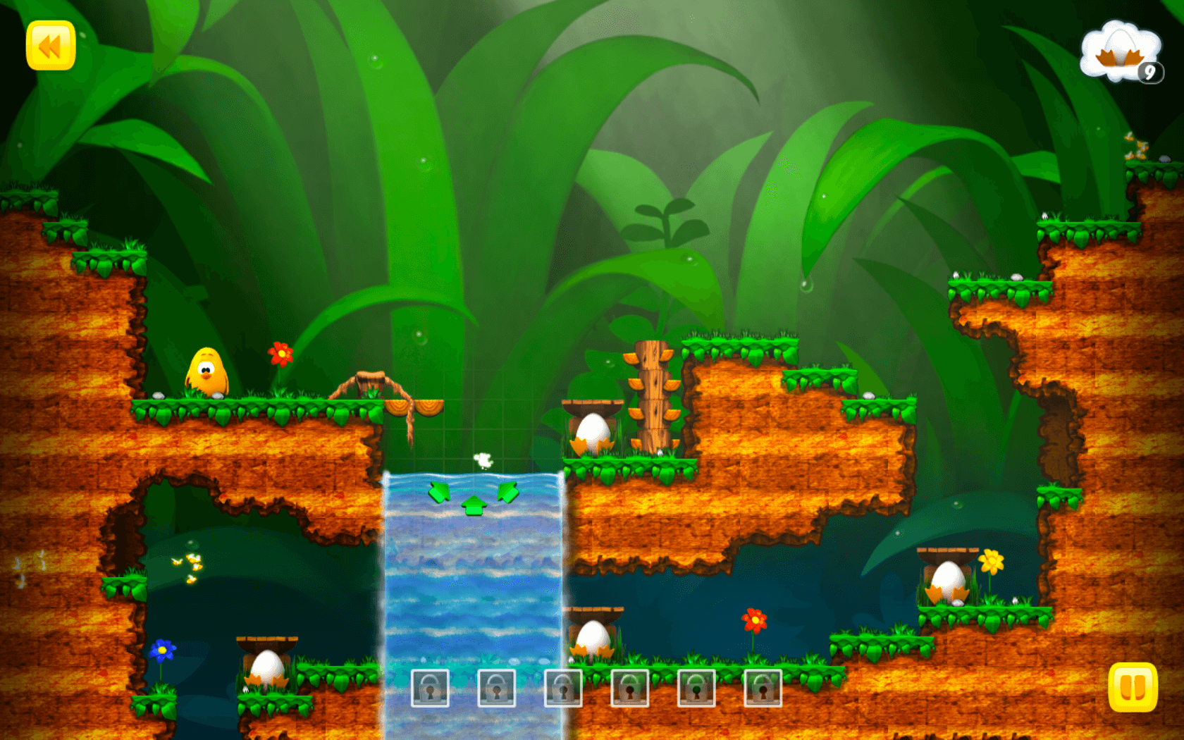 《小鸡快跑》又名《小鸡寻蛋记》的游戏体验是两种游戏类型的合成。虽然它看上去像一个主机平台游戏,但它实际上是一个益智游戏。游戏过程中,玩家需要用一组固定数量的工具拾起一关中的所有鸡蛋。虽然玩家可以使用诸如传送门、冰冻枪和速成岩™等道具,但是玩家必须先行谨慎的观察和计划。其余工具将逐步地在通过四个独特世界、80+ 关卡的游戏过程中加入。
