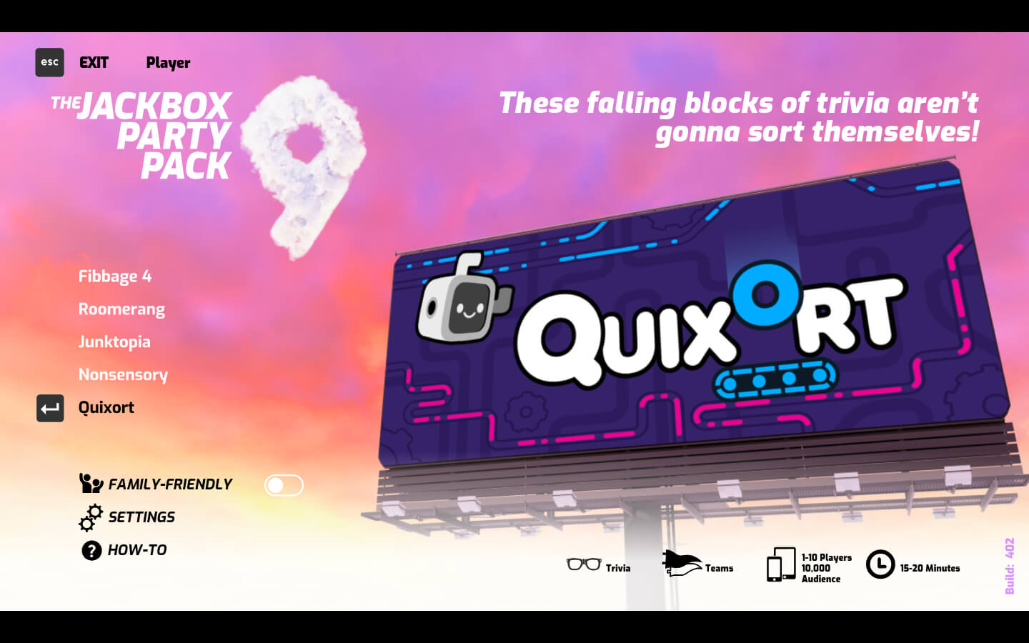 (1 至 10 名玩家)在这个问答分类工厂中,与你的团队合作,在落下来的答案落地之前将他们按正确的顺序排列!或者在单人模式下,看看你可以在封顶之前排列多少块。就像 A、B、C 一样简单。