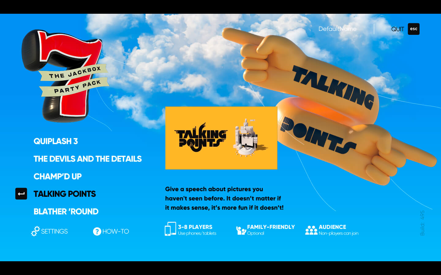 • 现场演讲游戏聊天点(3-8名玩家)。不管有没有道理,你还是继续说吧。