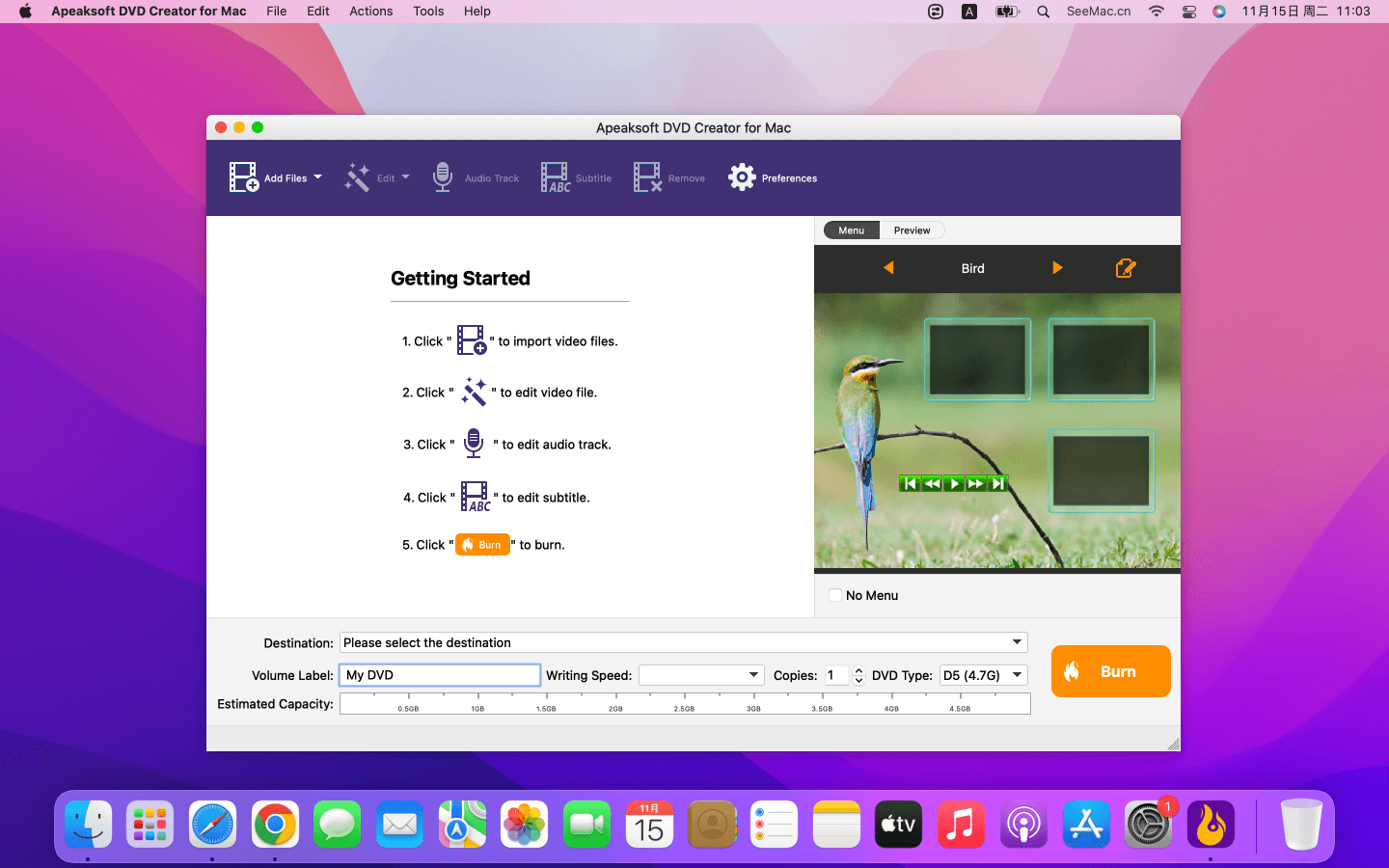 DVD光盘刻录软件 软件介绍 Apeaksoft DVD Creator 是一个不错的dvd光盘制作编辑工具,可以将 MP4 转换为 DVD/蓝光,将 AVI 转换为 DVD/蓝光,以及将其他视频转换为 DVD/蓝光。此外,它可以帮助您添加音轨和字幕。可以根据需要修剪视频长度,裁剪视频帧并为视频添加水印。