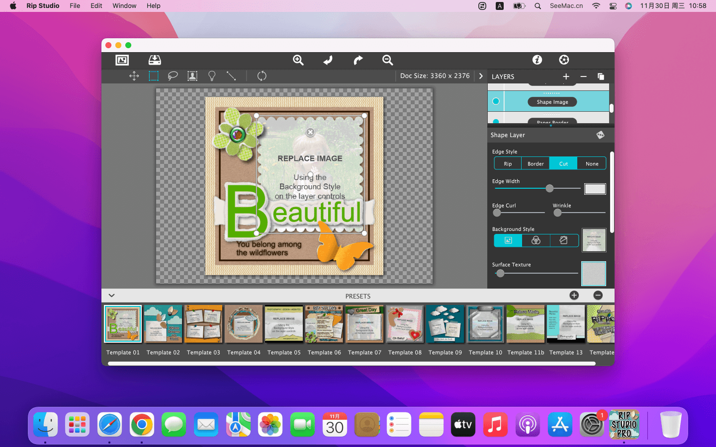 图片拼贴编辑合成工具 软件介绍 JixiPix Rip Studio Pro 是一款独一无二的图片拼接编辑处理工具,内置强悍的强大的3D光引擎工程,提供超现实的撕开和切割的边界、磁带、折痕、折叠图像以及卷曲的边缘与完整的三维阴影,是一款超强的图片处理工具。