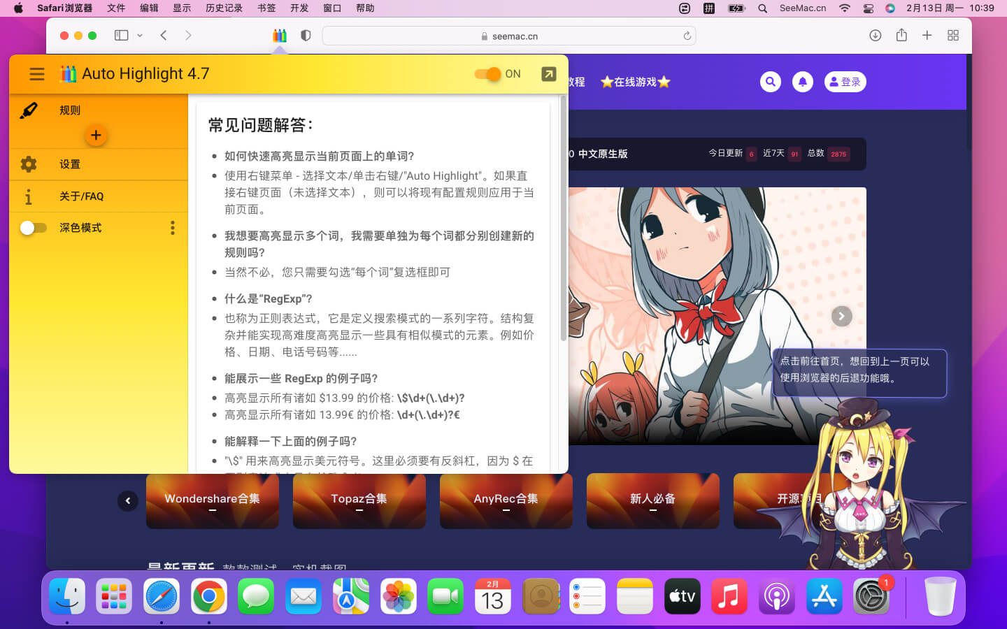 Safari网页自动高亮辅助插件 软件介绍 Auto Highlight 是一款帮助Safari网页界面进行自动高亮显示的浏览器插件,将自动突出显示定义页面上的重要内容,突出显示元数据,例如:1080p、HDR、4K、x265、HEVC、5.1