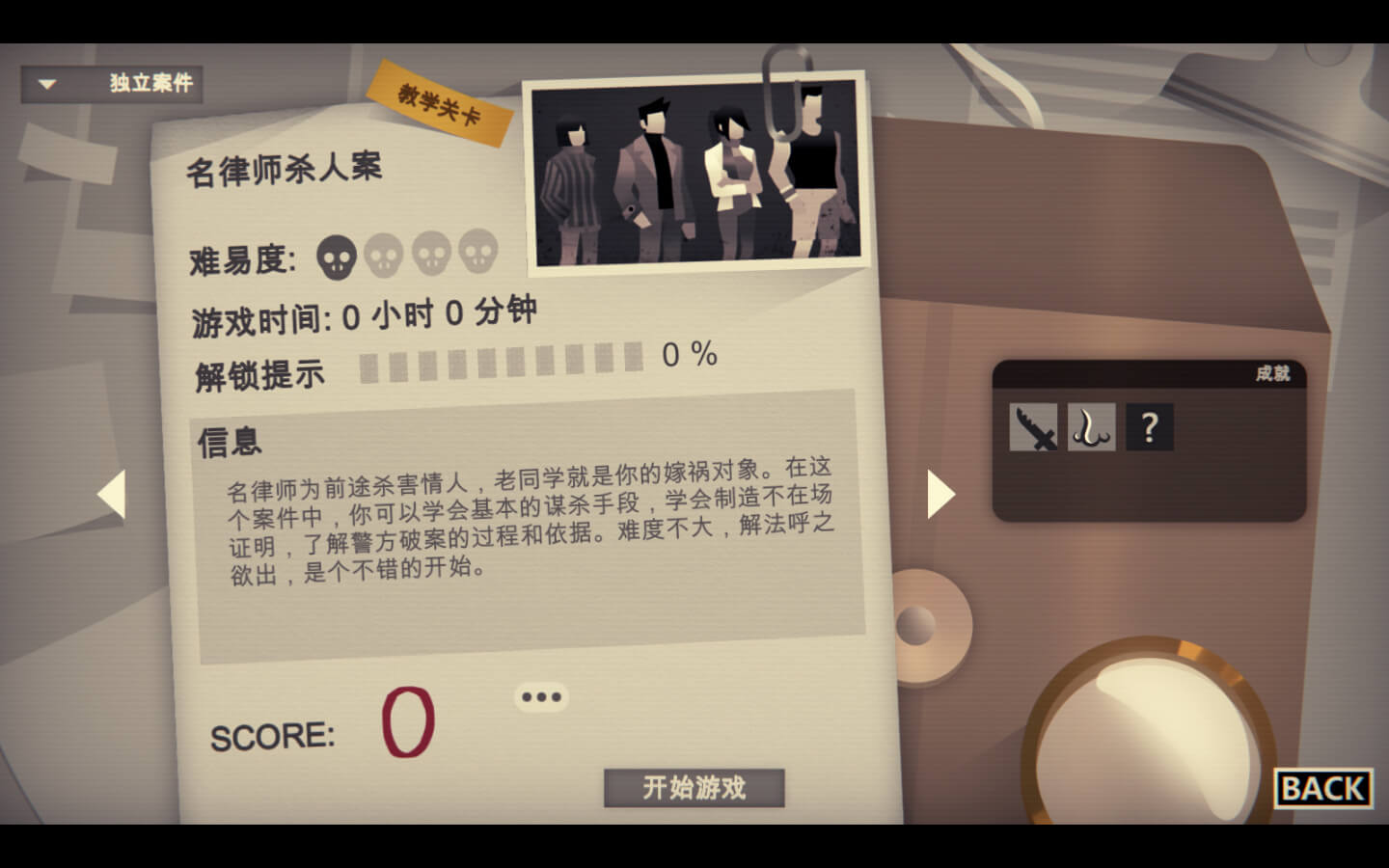 凶手不是我 Perfect Crime for Mac v1.01.1002(23.9.18) 中文原生版 全部游戏 2023-11-11 5 什么?你在现场?那你嫌疑最大! 游戏介绍 扎实的剧本故事,冷峻的叙事风格,《凶手不是我》将为你重现罪案发生的每一个细节,如何利用身边的日常事物,完成一出匪夷所思的犯罪演出,一切选择权在于你手。 《凶手不是我》 是一款可以算作侦探推理类的游戏,但很抱歉的是,它没有传统套路的拼图猜谜,没有市面上备受追捧的各种小游戏,游戏将围绕着真正的逻辑推理内核展开,聚焦于杀人动机、手段、不在场证明的伪造等贴近真实刑侦过程的内容上。