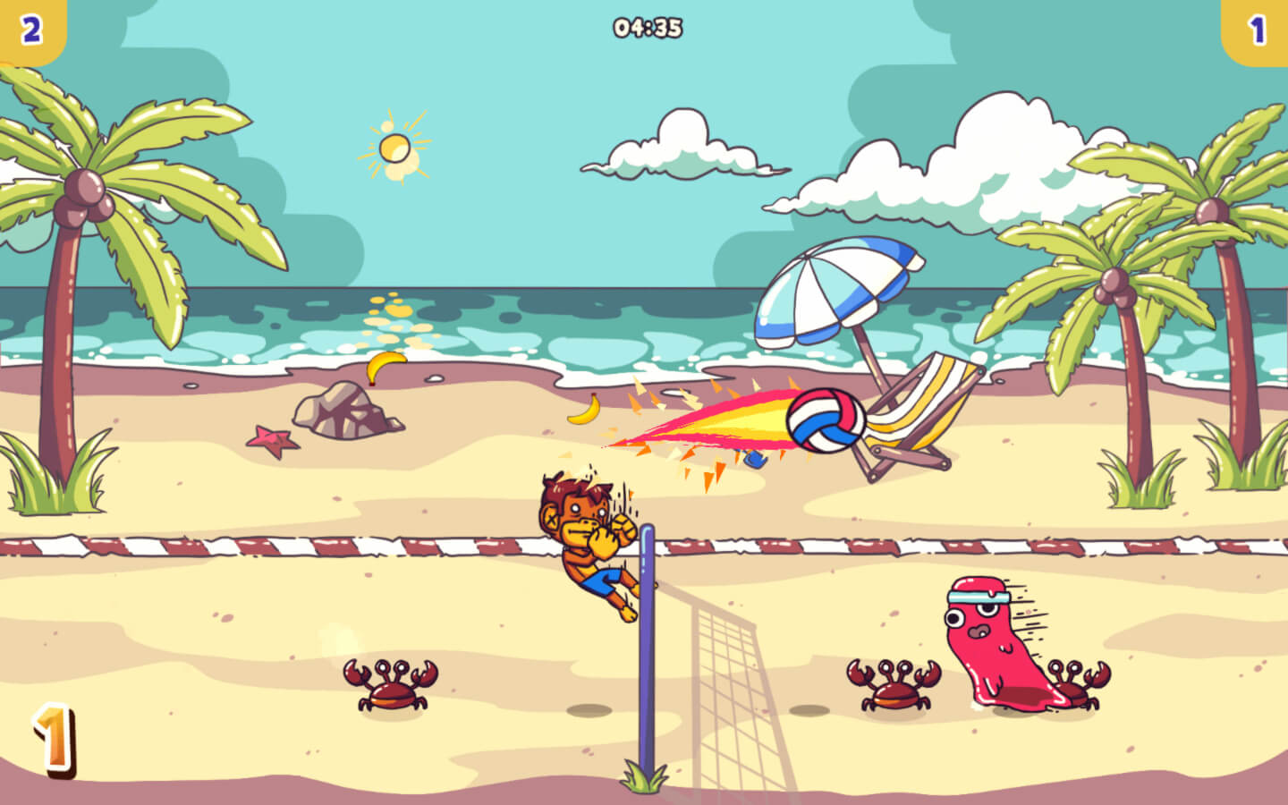 支持本地多人的卡通风格街机排球游戏