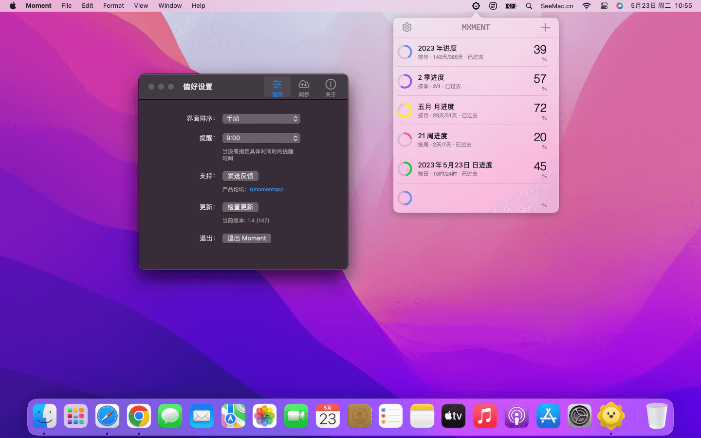 Moment 是一款常驻于 macOS 菜单栏和通知中心里的倒数日应用。