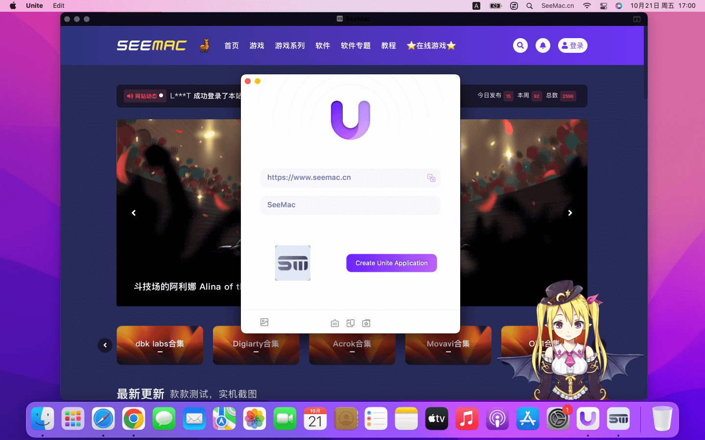 Unite 4 是一款可以将任意网站打包成macOS应用的工具,你只需要输入应用名称及需要打包的网址即可将其打包为xxx.app,你可以直接运行,也可以将它发给你的朋友,很好玩吧!还支持将网站打包成菜单栏应用。它使用了webkit内核浏览网站,Unite 4 添加了本机自动刷新功能,该功能可在任何给定间隔自动刷新应用程序中的网站。与 Dock Slices 结合使用非常好。