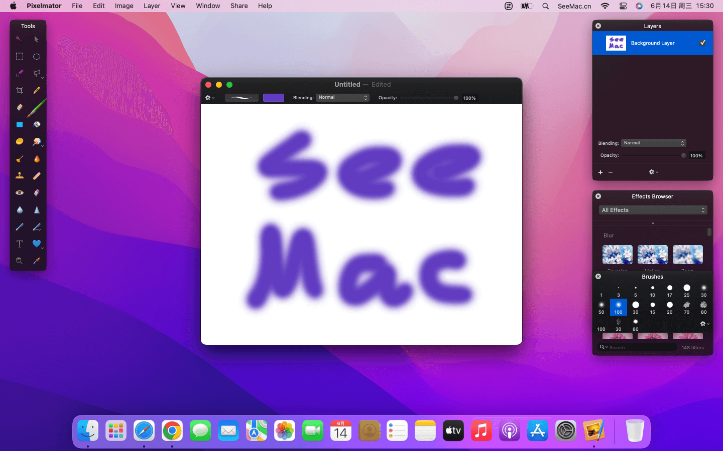 强大的图像编辑软件 软件介绍 Pixelmator 是一款适用于Mac的功能强大的全功能图像编辑器。它界面清爽,布局灵活,熟悉 Photoshop 的人可迅速上手。Pixelmator使您可以增强和修饰照片,素描,绘制和绘画,添加文本和形状,应用炫目的效果等等。软件建立在一些开源和 Mac OS X 图形技术之上,可调用 Mac 图形加速。使用起来在界面交互和流畅感上均优于 Photoshop,且与 Mac 自带程序整合不错。