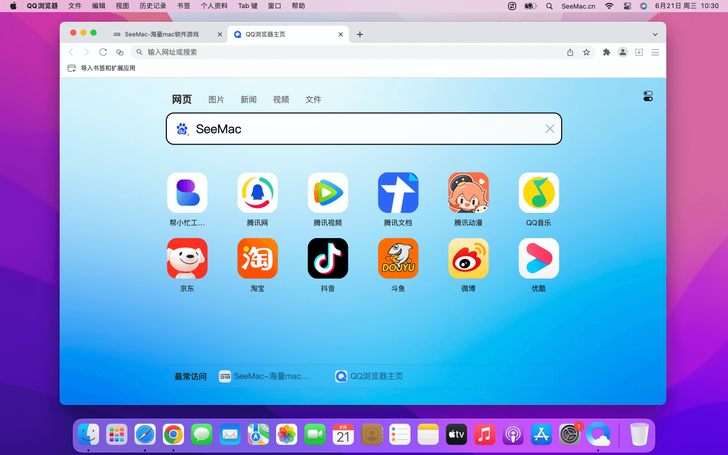 👍 更美的浏览器 软件介绍 QQ浏览器是Mac上一款免费软件,为用户提供更快的浏览体验、更美的标签主页。 原有资产怕丢失?浏览器mac版支持一键导入原有浏览器资产。 花里胡哨的功能让你太头疼?浏览器mac版为你带来清爽简洁的不一样体验。 千篇一律的搜索引擎当主页?最喜欢的网址只能放书签?最美的壁纸到哪去找?浏览器mac版为你带来一站式解决方案!超美超酷的个性化标签主页等你来体验。