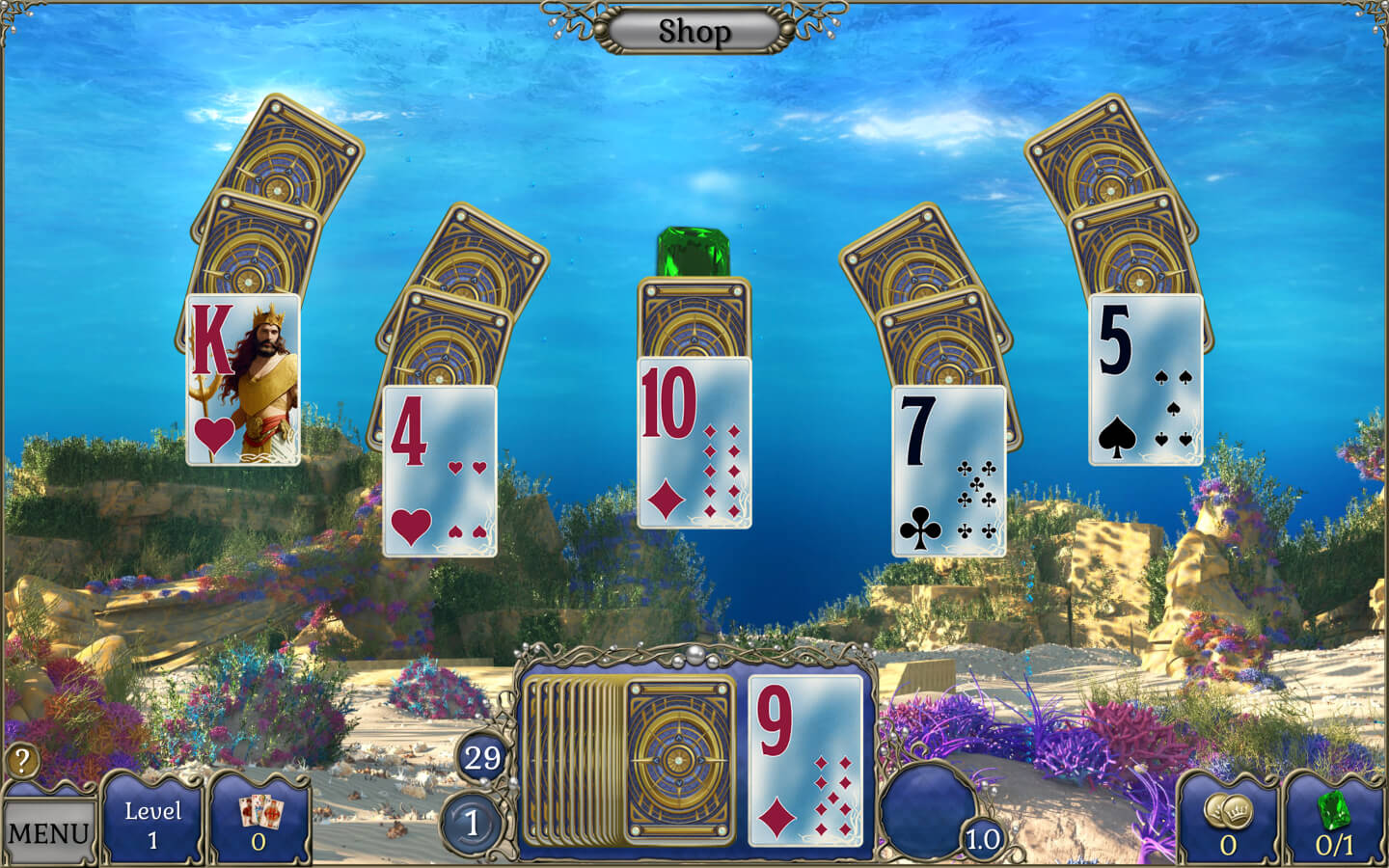 《宝石配对:亚特兰蒂斯纸牌(Jewel Match Atlantis Solitaire)》是Suricate Software制作的一款消除类纸牌益智小游戏。深入探索亚特兰蒂斯纸牌的神奇海底世界!在400个潜艇关卡中潜行,并恢复10个令人叹为观止的水下世界,解锁18个额外的纸牌关卡。