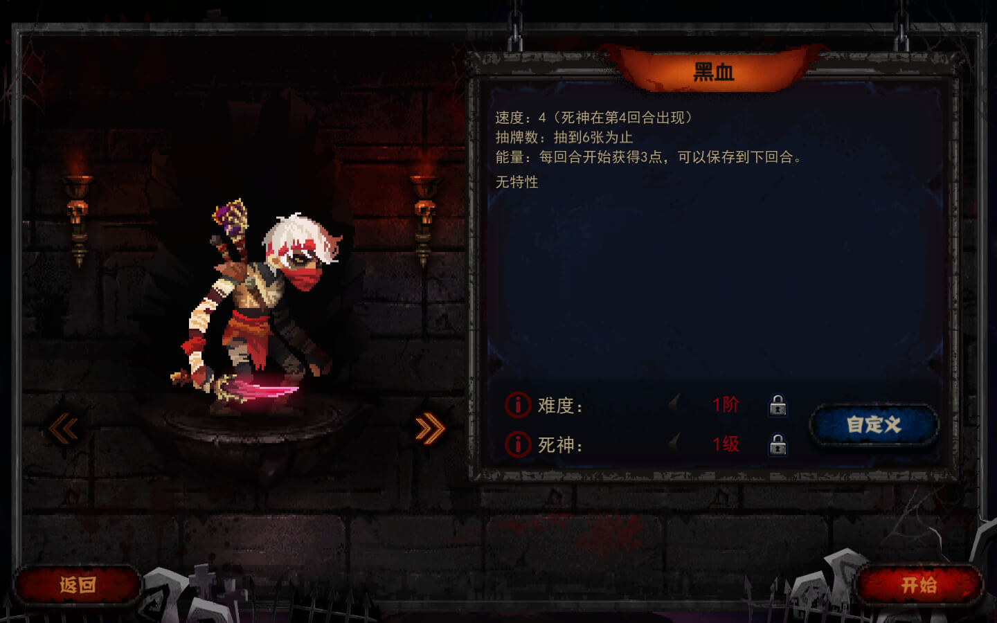 《Blood Card》是一款结合了Roguelike元素的卡牌游戏。你需要不断前进,打造独一无二的卡组,击败阻挡你的敌人,逃离或击败试图夺走你生命的死神。