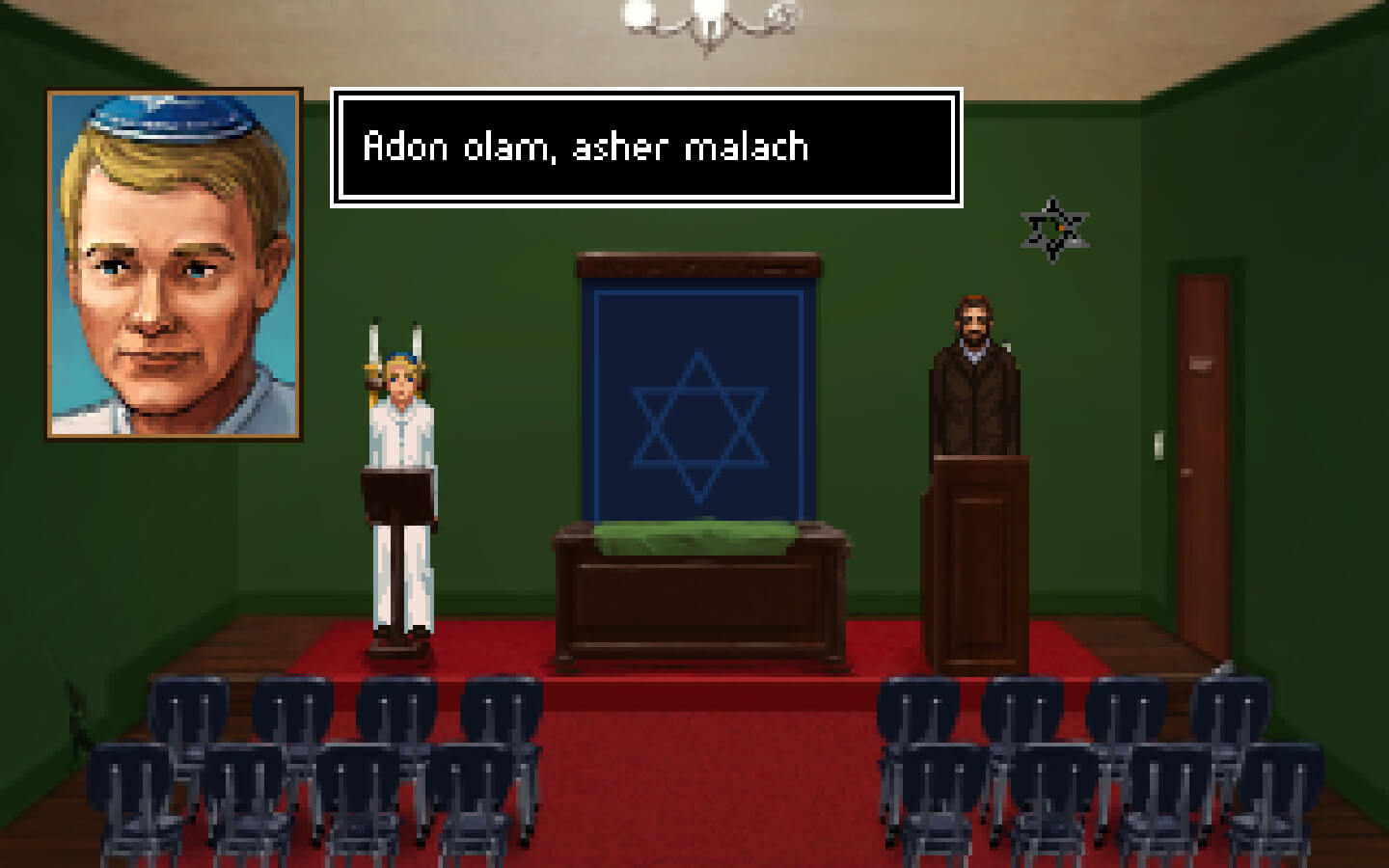 《七日丧期》(The Shivah)是一款冒险解谜游戏,由 Dave Gilbert 设计、双子座行动(Gemini Rue)的开发商 Wadjet Eye Games 制作并发行。游戏采用了经典的指点式玩法,当时还有艺人参与为游戏配音。游戏以一个犹太教士 Russell Stone 为主角,他所在的教堂因缺乏资金濒临关闭,但是一天警察因其原来所在的犹太教会堂的一名成员被杀并留给他一笔钱而对其有所怀疑,Russell 想要为自己洗刷嫌疑,于是决定自己去找寻隐藏在整个事件背后的真相。