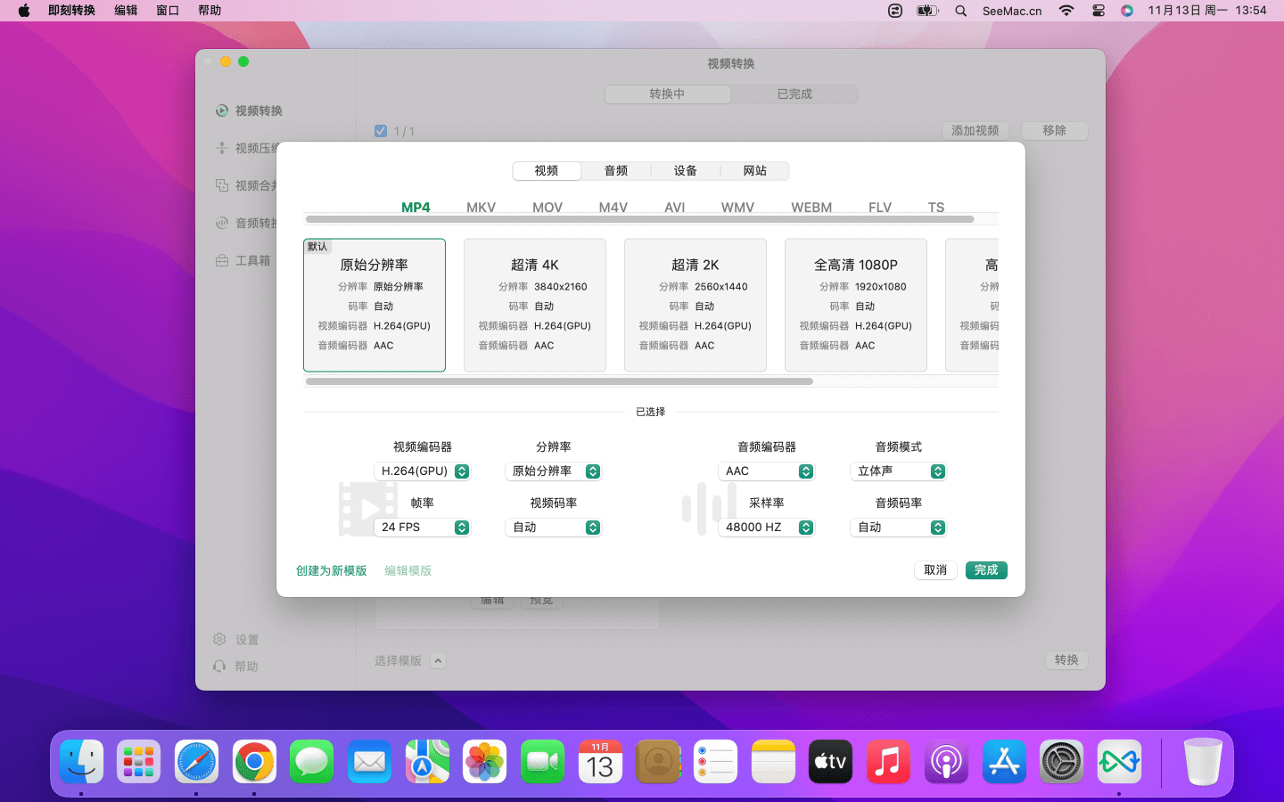 👍 万能小视频音频批量格式转码工厂 软件介绍 即刻转换是一款功能全面的格式转换软件,支持转换几乎所有主流的多媒体文件格式,包括视频 MP4、AVI、3GP、WMV、MKV、VOB、MOV、FLV;音频 MP3、AC3、FLAC、AAC、M4A、AIFF、WAV等。 即刻转换内置多种设备模版,如Mac、iPhone、iPod、Android、Windows、TV等,使你不需要去费劲研究不同设备对应什么播放格式,而是直接从即刻转换的模版列表中选择你需要的设备类型,就能轻松开始转换。
