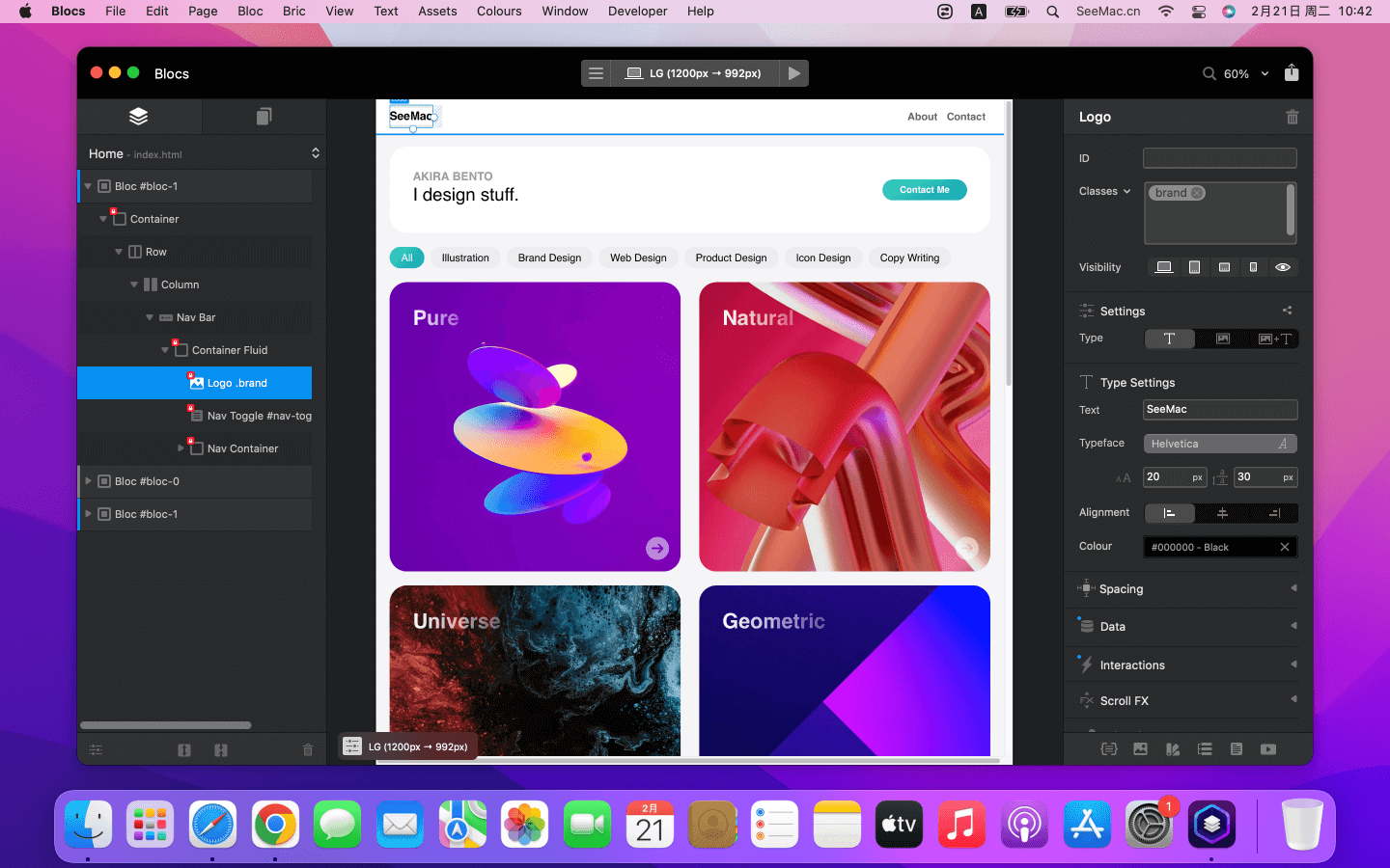 Blocs for Mac是一款快速、简单且功能强大的可视化网页设计工具,可让您无需编写html css js代码即可创建现代化自适应网站。