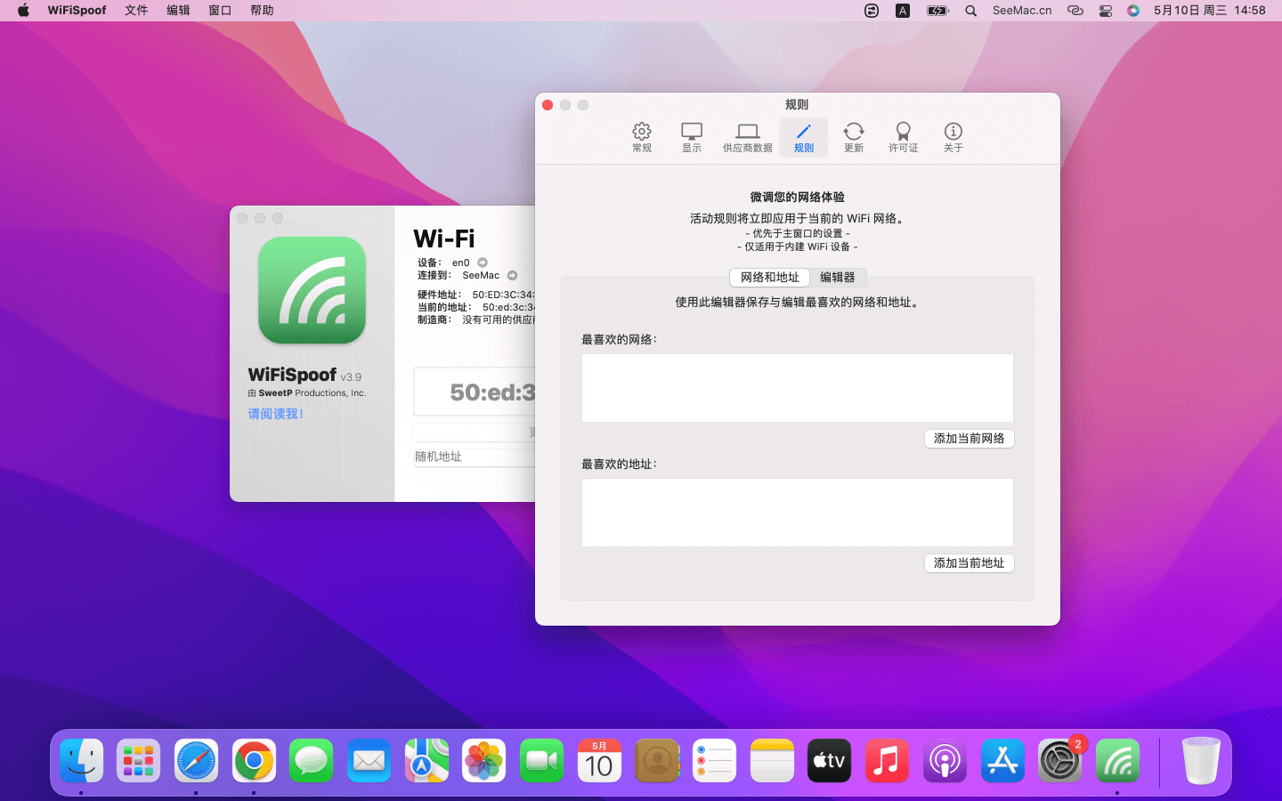 WiFiSpoof for Mac是一款十分便捷的Mac地址隐藏修改器,使用这款软件可以自动生成随机的MAC地址,避免一些网络限制,并在浏览公共Wi-Fi网络时保护您的信息。如果你想要在使用公共网络的时候保护自己的信息,那么这款软件来隐藏自己是很有必要的。