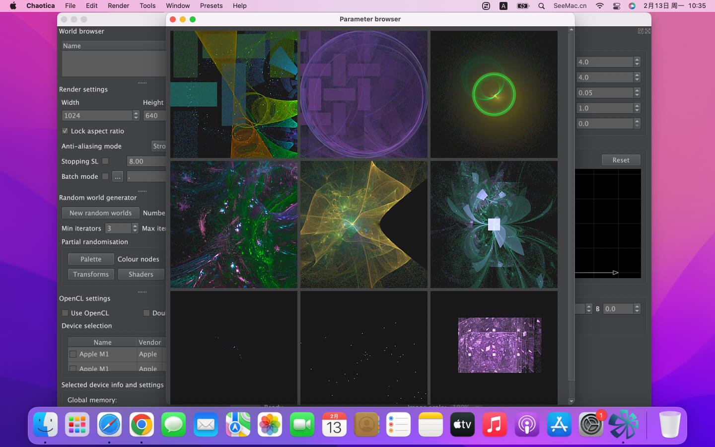 Chaotica 是一款专业的分形艺术壁纸及动画创作工具。新手可以编辑其中包含的示例以及随机生成的分形,从而轻松制作出精美的的高清壁纸。借助现代化的高性能渲染引擎,专业用户可以毫不费力地制作出越赞的艺术作品。Chaotica 可以生成高达400万像素(如2560×1600)的高清壁纸和长达3分钟的720p的动画。