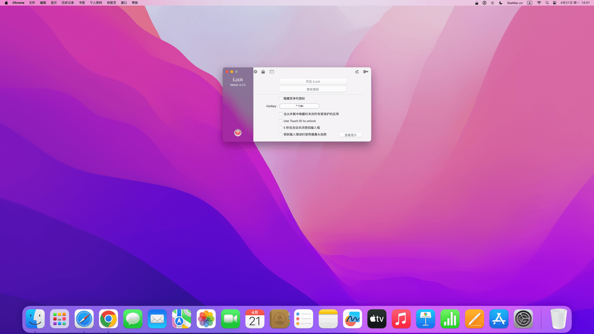 iLock是一个轻量级的macOS应用程序,使您可以锁定其他人无法访问的应用程序。这个想法很简单:当用户尝试打开用户指定的应用程序时,iLock会打开一个窗口,提示他们输入预定义的密码。应用程序本身使用您只知道的主密码进行保护。您不能忘记密码,因为除非您已经知道密码,否则无法更改密码。设置主密码后,您可以轻松指定要保护的应用程序。