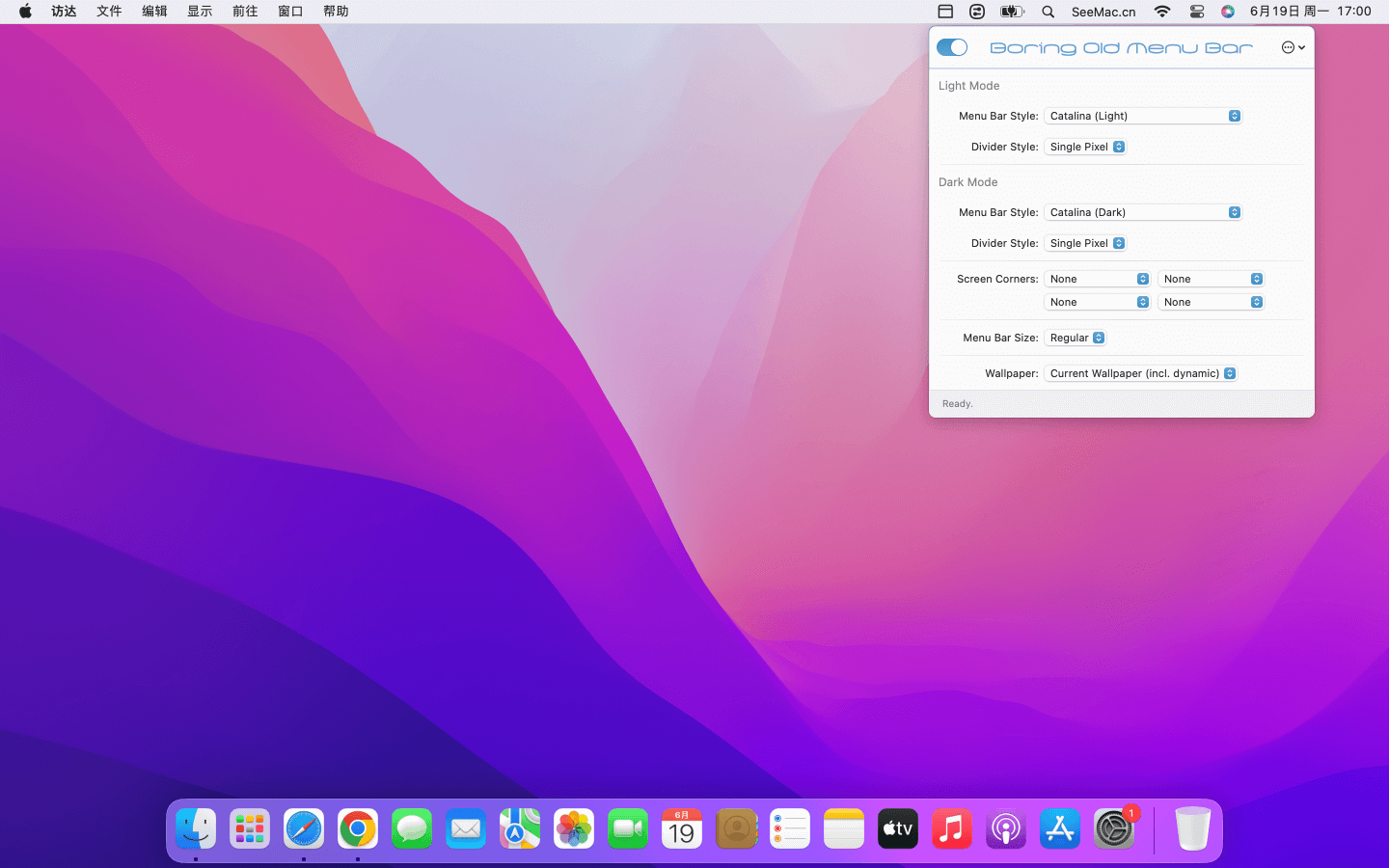 如何定制属于你自己的big sur 菜单栏?试试Boring Old Menu Bar mac破解版吧!可以有效的改进透big sur系统上的透明的菜单栏问题,而且支持不同的颜色,风格和屏幕圆角功能,非常方便!