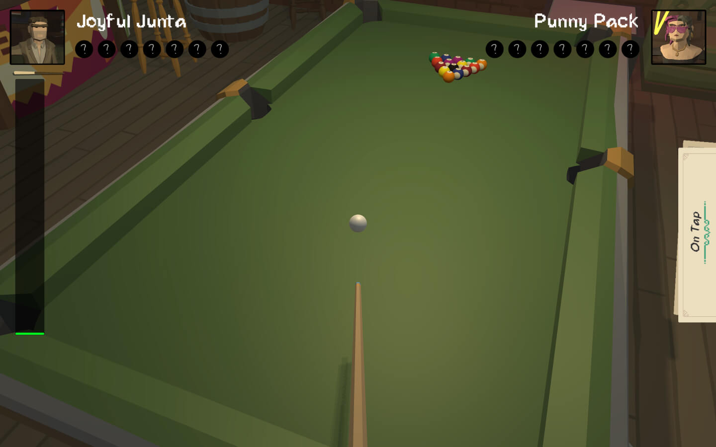 参加您玩过的最激烈的台球比赛。边玩边在酒吧点饮料,以增强您的击球能力(或让对手更难击球!)
