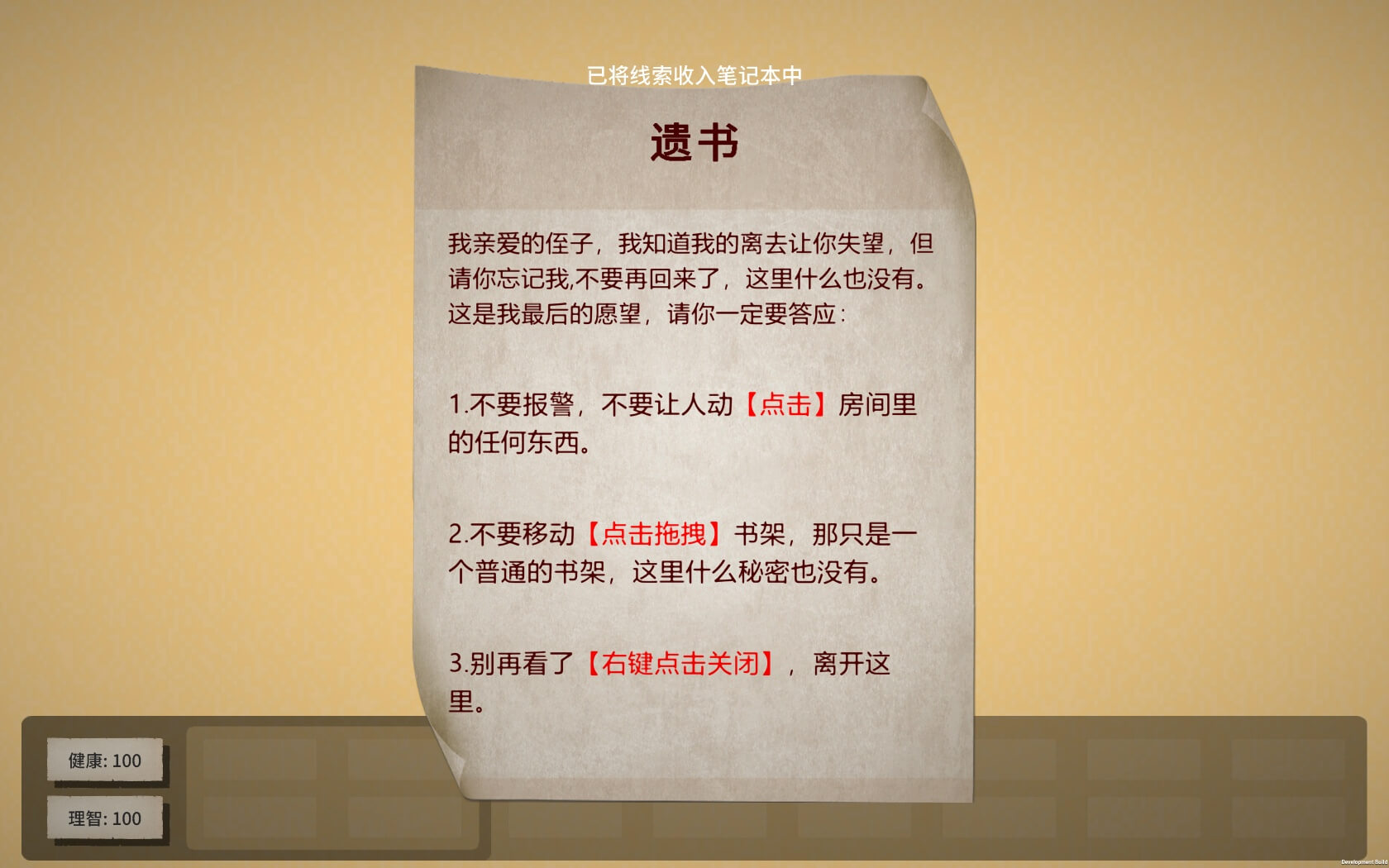 通过点击节点来探索世界,使用道具来与世界交互,解开谜题;通过阅读规则来了解鬼怪的行为,分析他们的弱点,通过正确的操作找到生路,在危机四伏的世界活下来