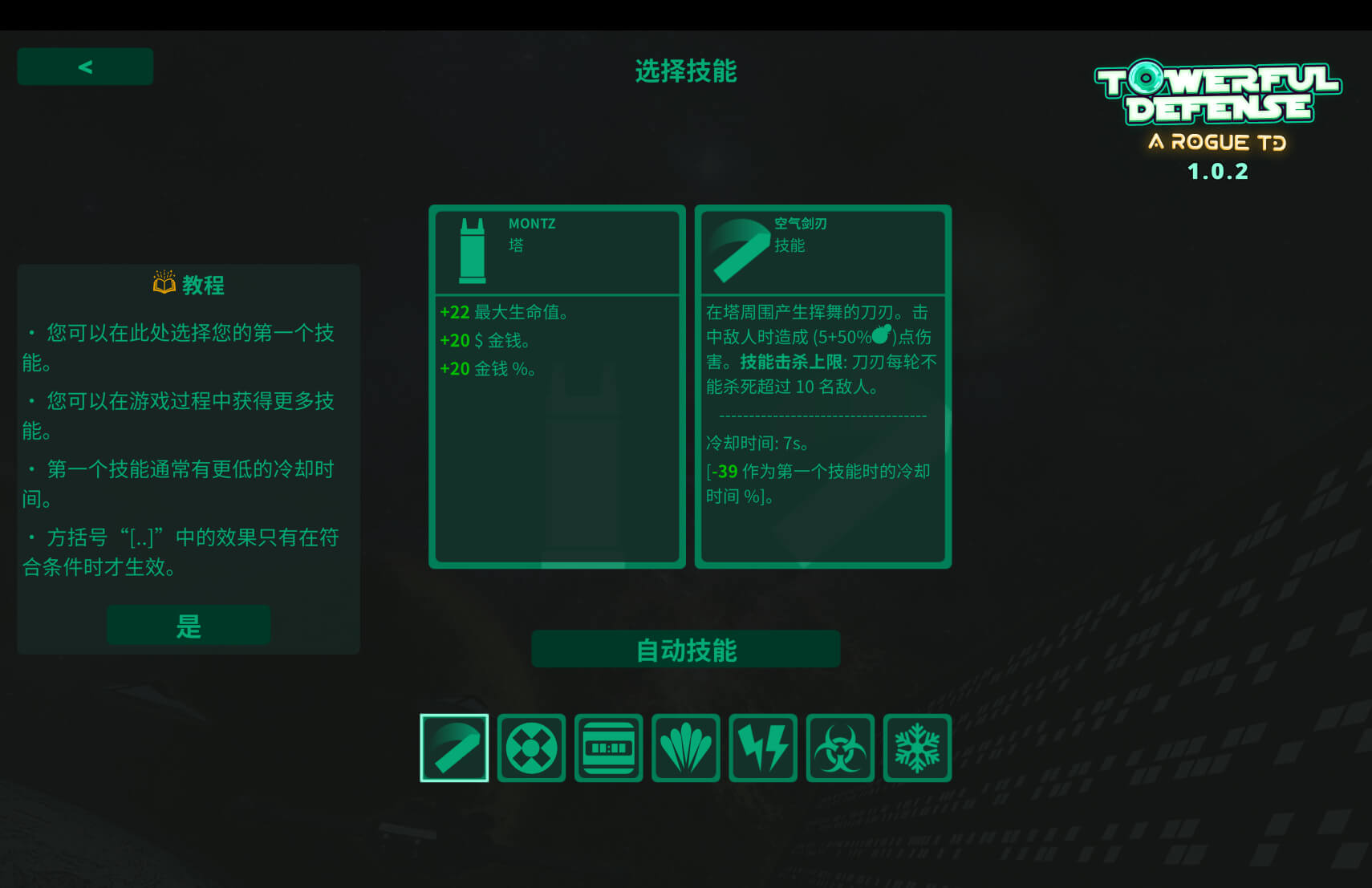 在游戏中,你的防御塔是中心,敌人从四面八方袭来。你的防御塔能自动射击敌人,同时你还可以部署其他被动支援单位,但最有效的杀敌方式来自你的手动技能!你能够装备最多四种技能,每个技能都能够升级两次,并且拥有独一无二的增强效果及至少三种特性,你可以根据战斗的需要和个人风格来定制技能组合。