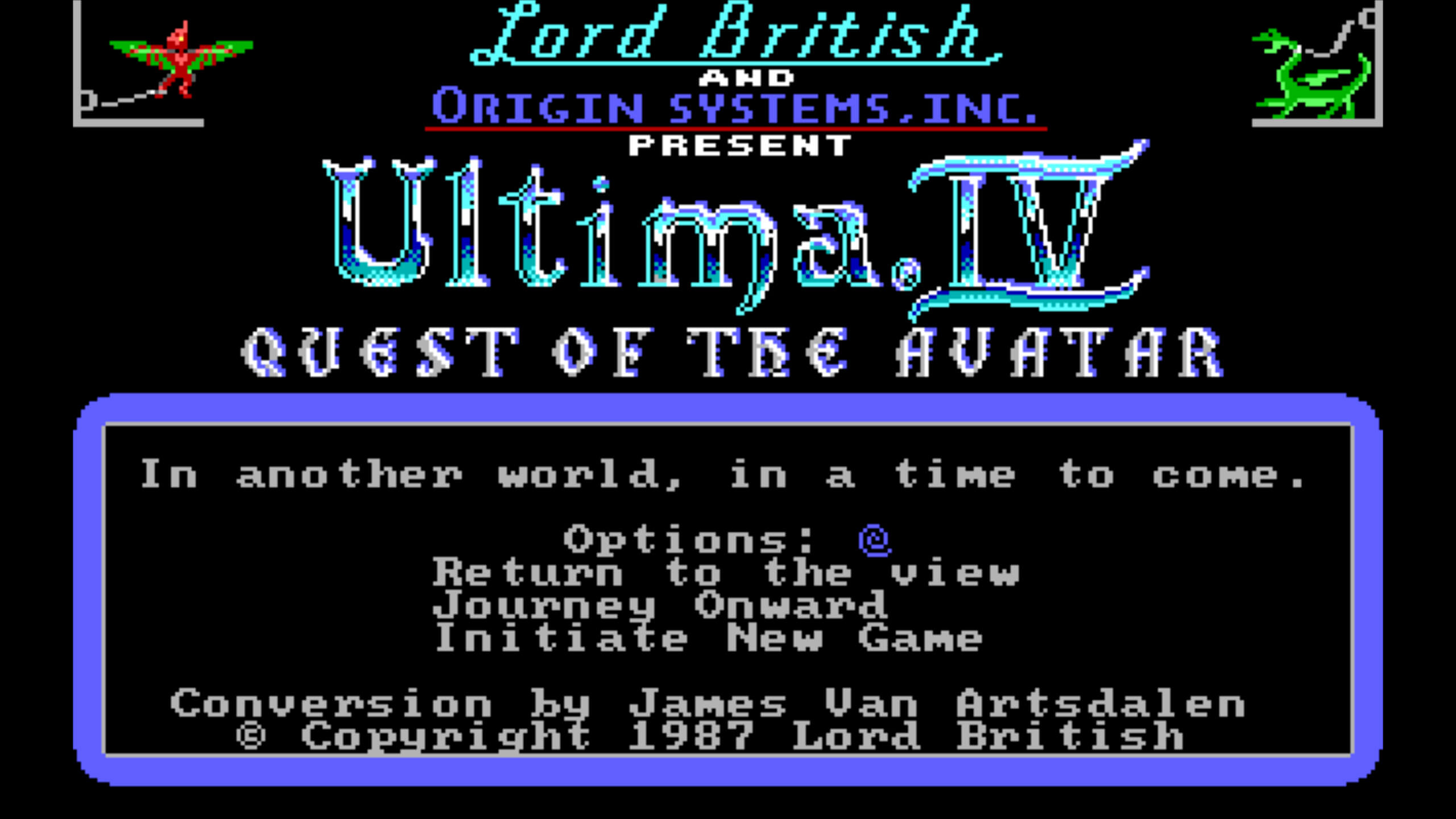这是一个革命性的游戏,亦成为日后所有创世纪游戏的根基。无论故事,地图,游戏内容,软件技术等都是当时角色扮演游戏的优秀代表。除了Apple版之外,还有了PC版,推出时间大概是1986-87年。