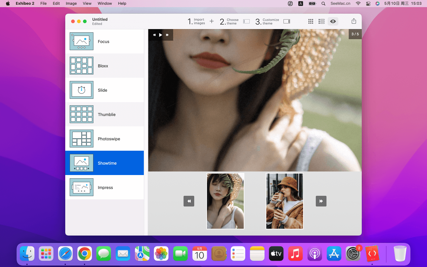 Exhibeo 2 是一款网页相册集、幻灯片、画廊制作工具。只需要将图片导入到 Exhibeo,然后选择模板,再导出为 web html 页面即可。Exhibeo 2 提供六个内置主题,无需学习 html/css/javascript 即可制作,主题设计具有响应能力,因此它们可以根据不同的浏览器和设备进行缩放,以适应您的照片的最佳显示效果,无论它们在哪里观看。缩略图和图像可以在Exhibeo中手动调整大小,从而更轻松地设计网络画廊和幻灯片以适合您网站上的任何空间。