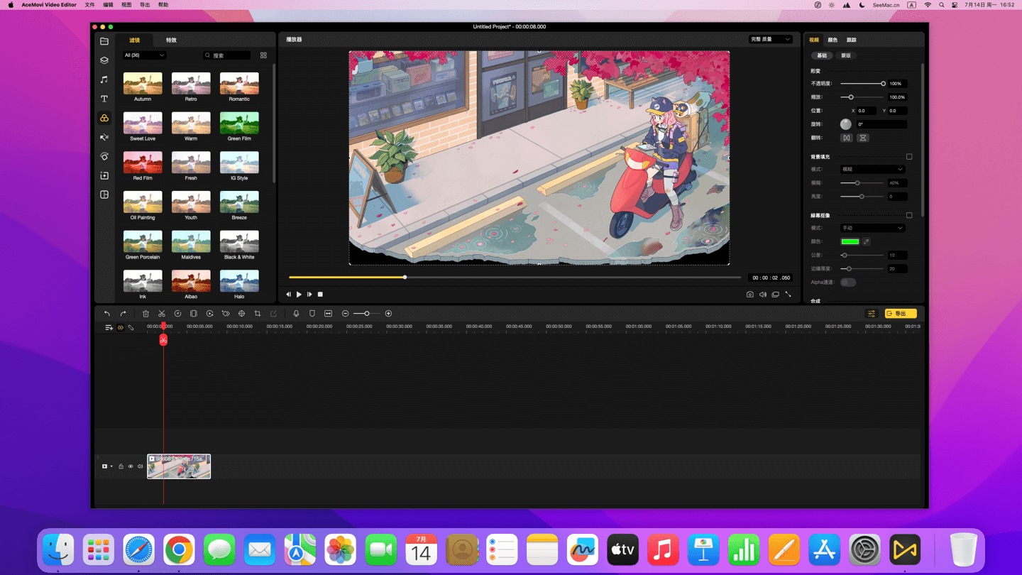 - 视频特效:AceMovi 提供了各种滤镜、转场效果、动画效果等特效,用户可以轻松为视频添加独特的风格和视觉效果。