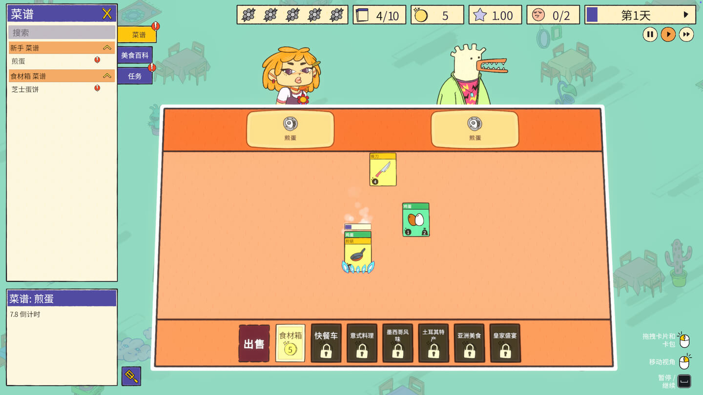 将普通小刀升级为顶级主厨餐刀,把小小的操作台变成豪华后厨!更多的卡牌、更丰富的搭配选择、更迅速的出餐速度,让你的小餐馆迅速进阶,成为万众瞩目的米其林三星殿堂!