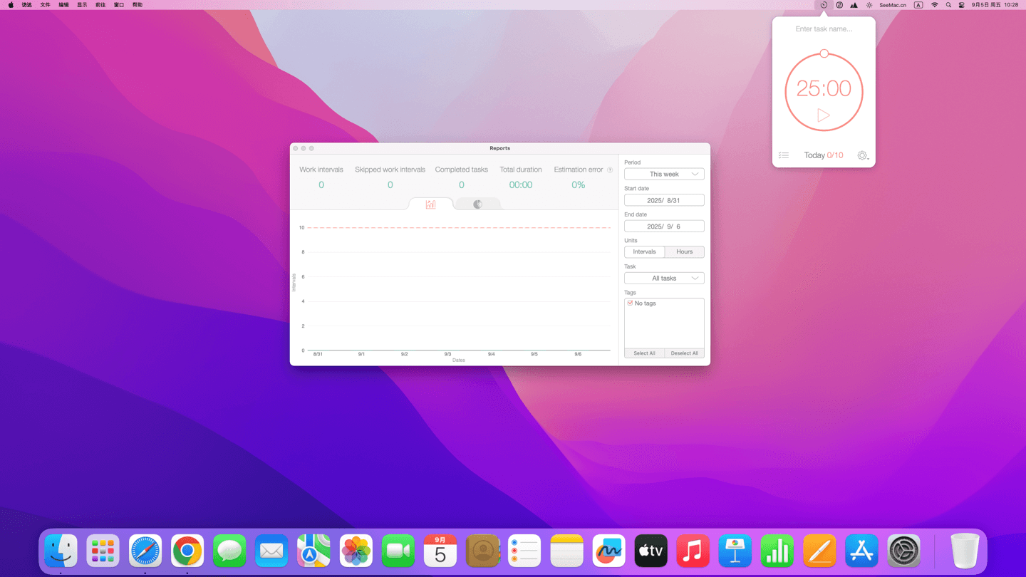 长时间工作对于我们离不开电子屏幕的这一代来说是个真正的挑战。通过将单个任务分成多段时间集中精力来完成,中间有休息,这会让你把工作做得更好。这也是保持工作激情和集中精力的极其有效的方法。它可以帮您按照每天、每周或自定义时间创建任务、计划休息时间并追踪您的进度。