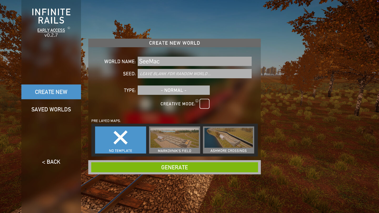 无限长轨道 Infinite Rails for Mac v0.2.7 英文原生版 全部游戏 2025-09-10 10 设计火车线路,操控火车行驶! 游戏介绍 无限轨道为玩家提供了一个无限延伸、程序生成的世界,在这个世界里,玩家可以铺设轨道、运输乘客和货物、完成任务,并解锁独特的车辆和技术。连接不同的城市和地区,促进贸易往来,同时也要应对各种自然环境带来的障碍。