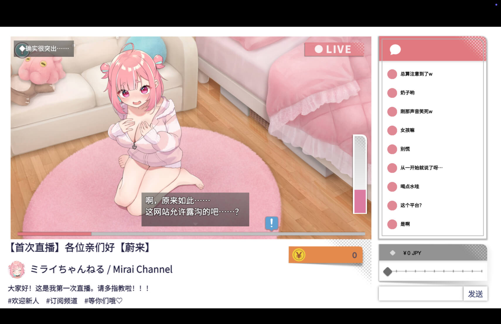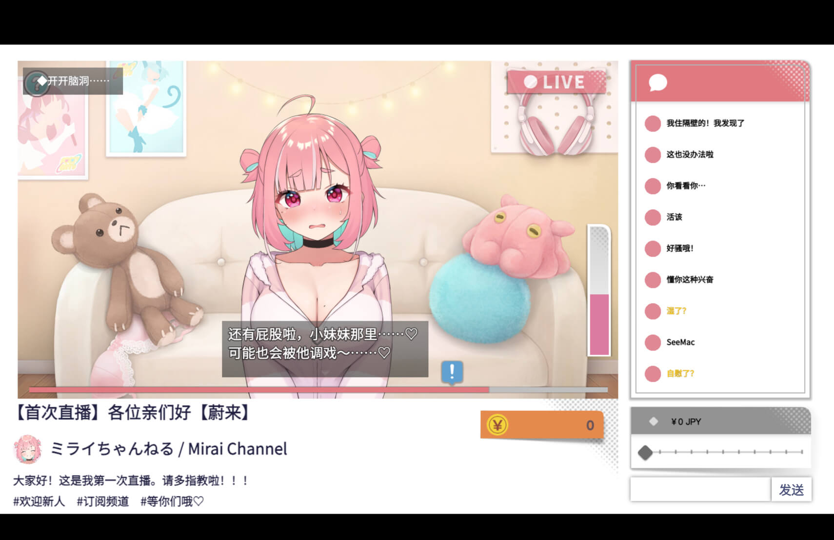 和有点蠢萌的女主播未来酱进行色色的互动,让直播更热闹吧!