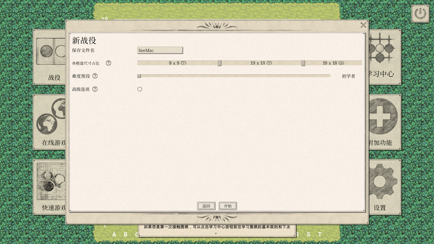 • 棋盘尺寸(5×5 – 19×19)、让子、贴目和时间等均可设置