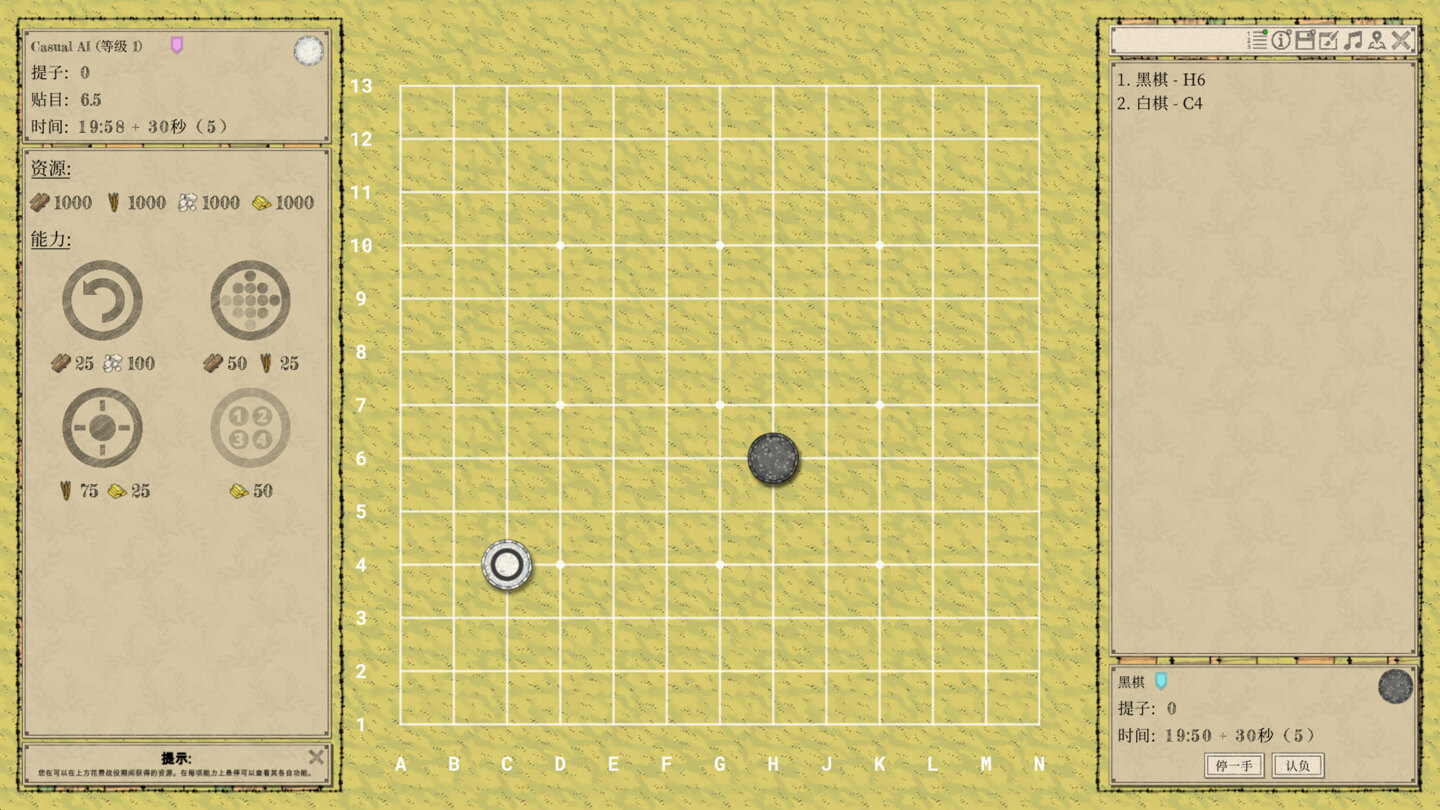 • 在最高AI等级下,AI能够与职业围棋选手一决高下